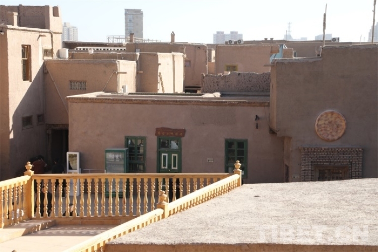 中國西藏網(wǎng)訊 在中國新疆維吾爾自治區(qū)喀什市,在繁榮熱鬧的喀什古城對面,僅一條馬路之隔,坐落著代表喀什傳統(tǒng)建筑靈魂的高臺民居。高臺民居又名闊孜其亞貝希老城區(qū),它位于吐曼河西岸一處高約30米、長寬約400米的黃土高臺上,其面積約57000平方米。“闊孜其亞貝希”有高崖土陶的意思,因而高臺民居又被稱為高崖上的土陶人家。
