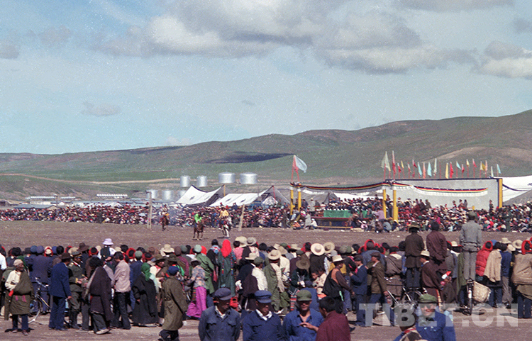 在藏北首府那曲鎮(zhèn)草壩上所舉行的傳統(tǒng)賽馬盛會(huì)(唐召明1987年攝)