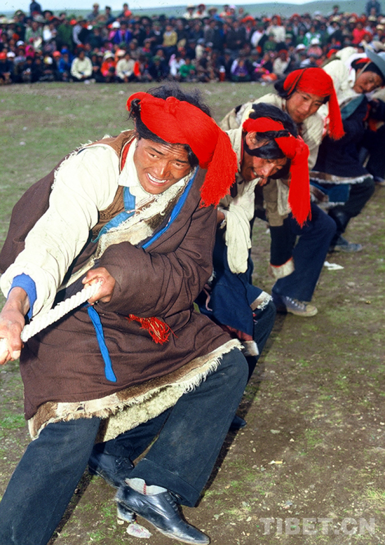 在那曲賽馬盛會(huì)上舉行的拔河比賽(唐召明1987年攝)
