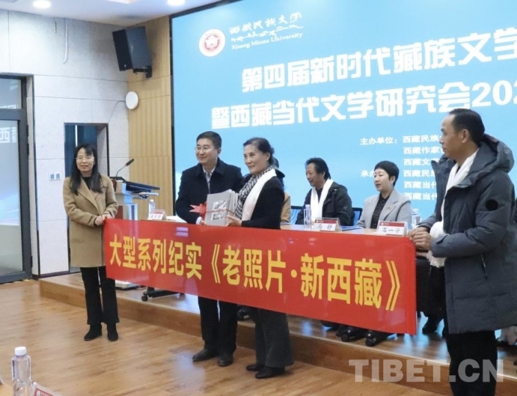 西藏民族大學(xué)校友、作家陳琳女士向西藏民族大學(xué)文學(xué)院贈送了她主編的6卷本大型系列紀(jì)實(shí)影像集《老照片·新西藏》。她表示,作為西藏文學(xué)的一名創(chuàng)作者,首先要思考為誰去寫、寫什么的問題,作家應(yīng)該堅(jiān)持為人民而寫作的立場,堅(jiān)持從民間和現(xiàn)實(shí)生活中汲取力量。