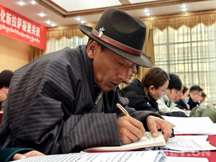 圖為開幕會現(xiàn)場政協(xié)委員認真做著筆記 攝影:次旦拉姆