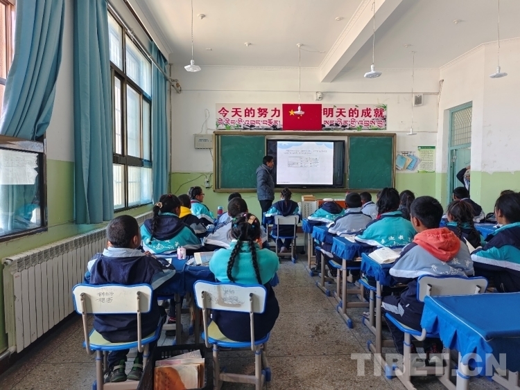 圖為雄麥鄉(xiāng)小學(xué)六年級的學(xué)生在暖和的教室里上數(shù)學(xué)課 攝影:頓珠