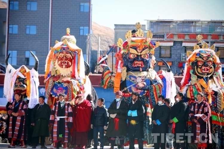 圖為1月10日,西藏薩迦寺舉行一年一度的“堆慶”宗教神舞表演