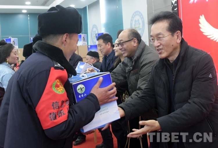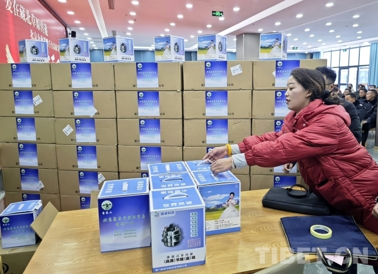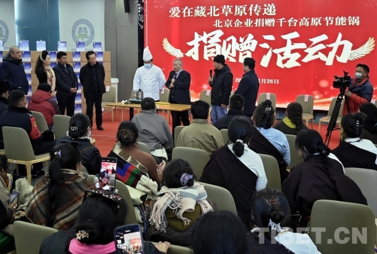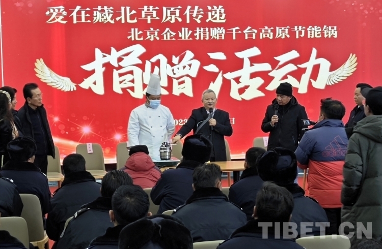 隆冬時節(jié),藏北大地千里雪飄,寒氣襲人,但在那曲市職業(yè)學(xué)校實訓(xùn)樓里卻熱鬧非凡。室內(nèi),大型電子屏顯示著“愛在藏北草原傳遞——北京企業(yè)捐贈千臺高原節(jié)能鍋捐贈活動”的字幕。那曲市近百名農(nóng)牧民群眾和環(huán)衛(wèi)工人、鐵路護路隊員代表相聚這里接受捐贈。