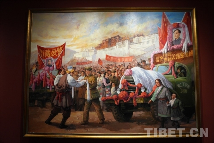 圖為順利會(huì)師紀(jì)念油畫,畫中為慶祝川藏、青藏公路全面通車的歡慶場(chǎng)景 攝影:陳浩力