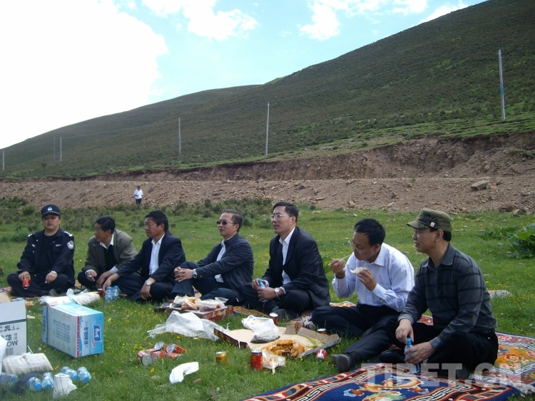 圖為2009年7月,朱曉明(右三)帶隊赴昌都調(diào)研路餐
