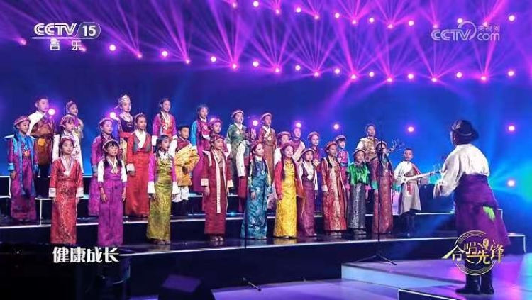 圖為西藏珠峰少年合唱團(tuán)登上中央廣播電視總臺(tái)音樂頻道合唱節(jié)目《合唱先鋒》舞臺(tái)