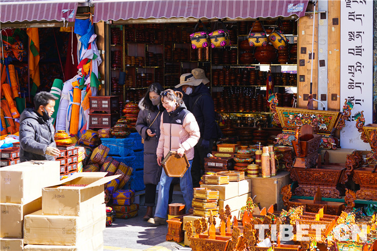 中國西藏網(wǎng)訊 藏歷新年和新春佳節(jié)即將到來,西藏自治區(qū)拉薩市大街小巷熱鬧非凡。年貨一條街、超市、商店?duì)幭嗤瞥龈魇侥曦洠教帍垷艚Y(jié)彩,處處洋溢著喜慶的氛圍。記者于近日來到八廓商城,通過一組照片帶大家一起感受喜迎藏歷新年的濃濃氛圍。(中國西藏網(wǎng) 記者/趙振宇 王佳豪)