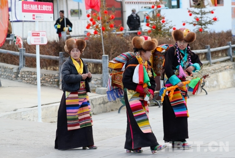 圖為村民早早前往活動現(xiàn)場 攝影:次仁龍布