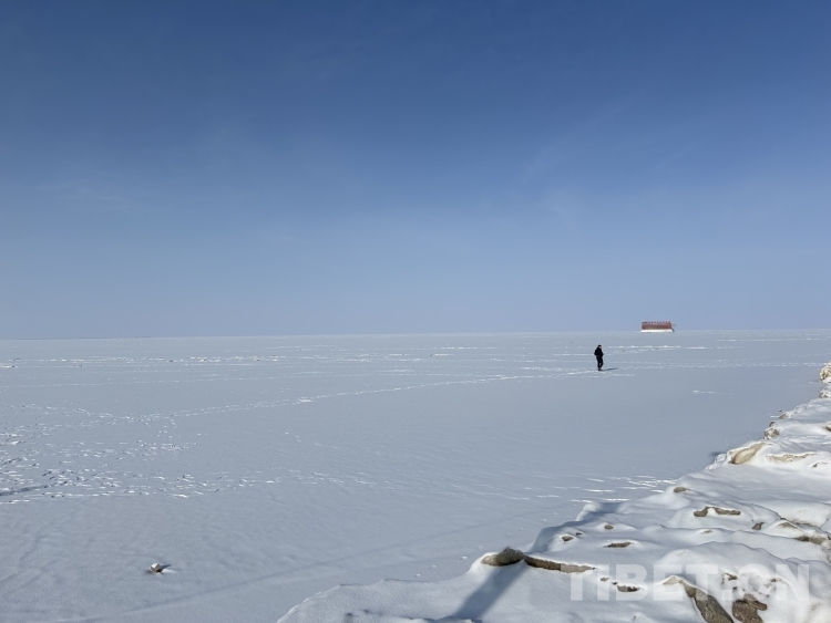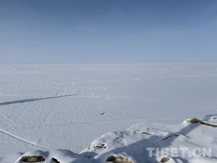 青海湖是我國面積最大的內(nèi)陸湖泊,湖岸線長約360公里。落雪后的湖面更是白茫茫一片,極目遠(yuǎn)眺,水與天相接。天地間十分安靜,只余不太溫柔的風(fēng)聲在耳側(cè)呼嘯而過。偶爾有游人在冰面走動,在白色的背景下顯得格外醒目。我們的無人機(jī)好像一只勇敢的沙鷗,翱翔在水天之間。(中國西藏網(wǎng) 文/李一凡 龍真多吉 張萌萌)