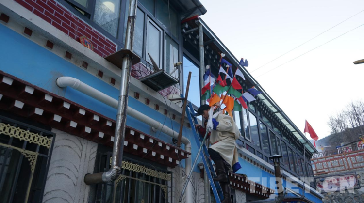 圖為次仁德瓊的家人正在更換新的“塔覺” 攝影:張曉琪