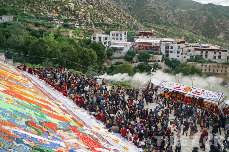 圖為2023年拉薩雪頓節(jié)哲蚌寺展佛現(xiàn)場(chǎng)。雪頓節(jié)距今已有近千年歷史,近年來雪頓節(jié)在各級(jí)政府的保護(hù)和發(fā)展中,已從單純的民俗文化節(jié)日成為集傳統(tǒng)展佛、體育競(jìng)技、文藝匯演、經(jīng)貿(mào)洽談、商品展銷、旅游推介、民俗體驗(yàn)等為一體的復(fù)合型節(jié)日。 攝影:趙振宇