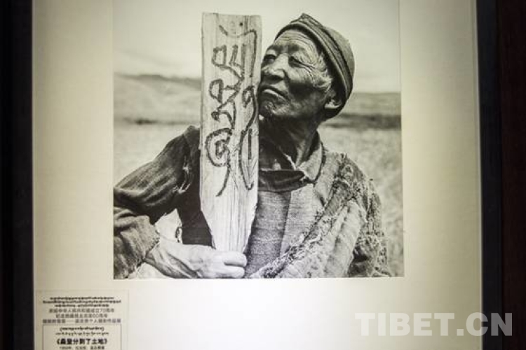珍貴的照片《桑登分到了土地》拍攝于1959年,身世悲苦的老農(nóng)奴桑登,在分到土地那一天,他把那象征分土地的木牌緊緊地貼在臉頰上,這個木牌上寫著藏文:桑登田。