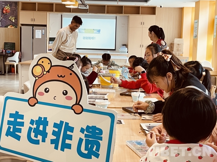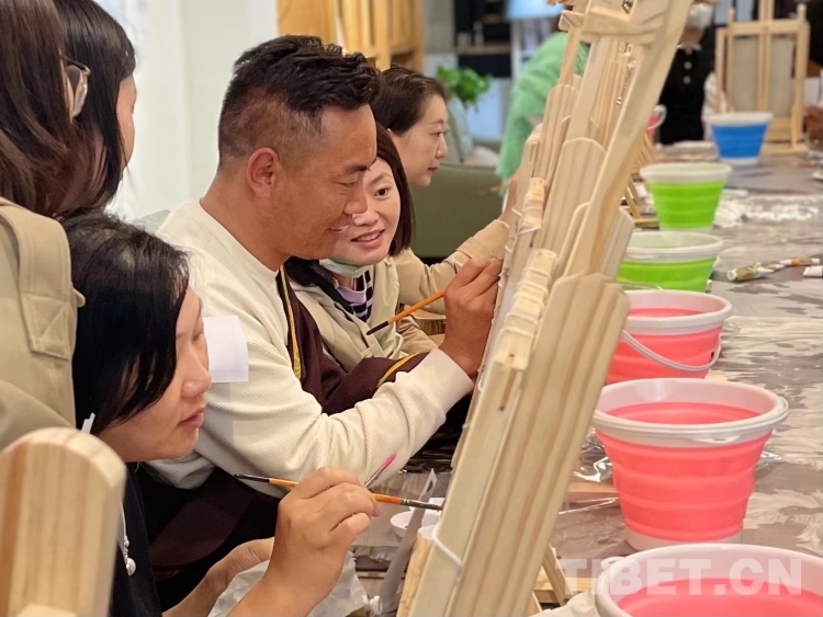 圖為郎卡杰唐卡體驗(yàn)課現(xiàn)場