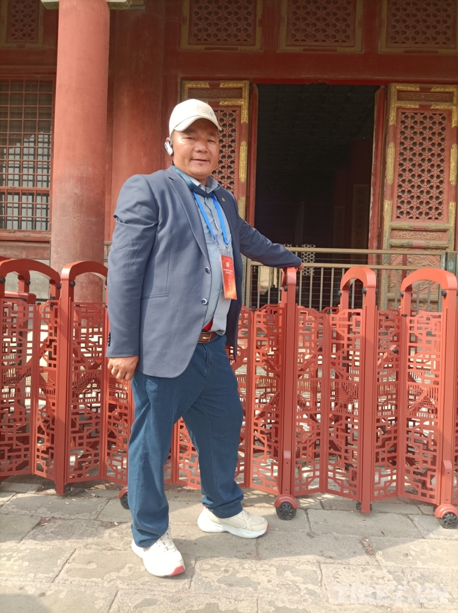 圖為西藏自治區(qū)野生動物保護(hù)員進(jìn)京考察學(xué)習(xí)團(tuán)全體成員在故宮前合影 攝影:趙婧茹