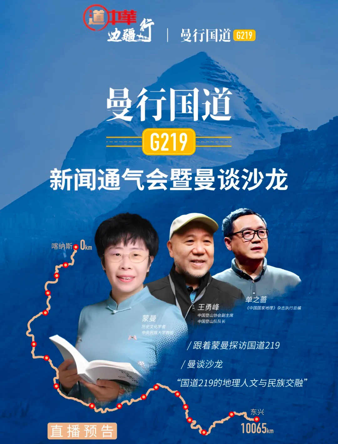 圍繞即將正式啟程的“曼行國道·219”活動,現(xiàn)場還舉行了“曼談沙龍”,蒙曼教授與特邀嘉賓——中國登山協(xié)會副主席、中國登山隊(duì)隊(duì)長王勇峰,《中國國家地理》雜志社執(zhí)行總編單之薔,圍繞“曼行國道·219”沿途的自然地理、人文歷史、民族風(fēng)俗等話題展開了對話。蒙曼教授分享了她對于219國道沿途歷史文化、各民族生活情態(tài)和非遺傳承等內(nèi)容的了解和期待;單之薔結(jié)合親身經(jīng)歷,分享了他對于219國道壯美景色和地理景觀的印象和出行經(jīng)驗(yàn);王勇峰則從戶外安全角度,對219國道沿線需要注意的事項(xiàng)進(jìn)行了安全講解和現(xiàn)場指導(dǎo)。