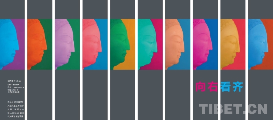 在創(chuàng)作過(guò)程中,陶宏嘗試將傳統(tǒng)佛像藝術(shù)與現(xiàn)代油畫技法相結(jié)合,融入現(xiàn)代審美元素和時(shí)代精神。“我希望用西方的觀念來(lái)表達(dá)東方精神,這就是互鑒與融合?!碧蘸甑挠彤嬜髌贰稘h字雕塑》《覺(jué)者》、《向右看齊》等受到沃霍爾、克洛斯的影響,中外文化在時(shí)空的交融與碰撞中,即刻產(chǎn)生出新的觀念。借助現(xiàn)代藝術(shù)手法和觀念,陶宏嘗試對(duì)佛像藝術(shù)進(jìn)行解構(gòu)與重塑。通過(guò)打破傳統(tǒng)的創(chuàng)作界限,將佛像與周圍環(huán)境、人物以及情感進(jìn)行融合,創(chuàng)造出一種新的藝術(shù)表達(dá)方式,更加自由、開(kāi)放。