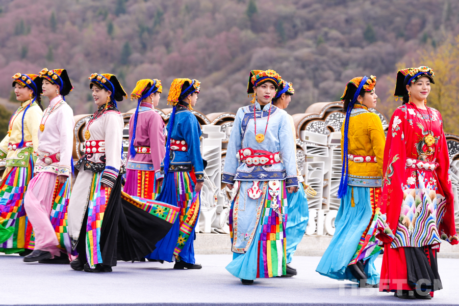 圖為“世界的阿壩”2024年系列網(wǎng)絡(luò)宣傳活動啟動儀式上嘉絨藏族服飾展示 攝影:趙振宇