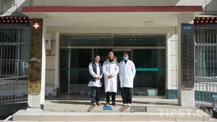 圖為洛扎縣中心醫(yī)院拉康分院,華旦才仁(中)和同事們 攝影:畢然