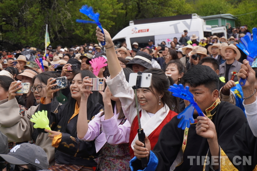 開幕式在群舞《丹旭承韻》中拉開序幕,《百鳥爭鳴》《圣潔米林·心之向往》《咱們西藏》《高原紅》《同心同行》等14個民俗特色歌舞依次上演,知名歌手容中爾甲、三農(nóng)主播阿佳旺姆等輪番上臺,為當?shù)厝罕姾陀慰蛶硪粓鼍实亩嗝褡逄厣栉枋⒀纭S茡P婉轉(zhuǎn)的民族歌曲、多姿多彩的非遺舞蹈、耳熟能詳?shù)某绷饕魳罚@得現(xiàn)場掌聲、歡呼聲不斷。