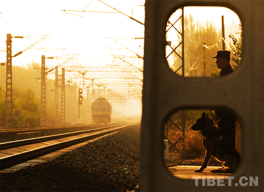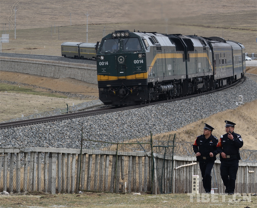 圖為民警跟隨列車(chē),用腳步丈量“天路”