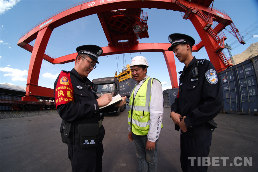 拉薩西站貨場(chǎng)是西藏自治區(qū)最大的鐵路物流集散中心,圖為該站派出所民警定期開(kāi)展安全知識(shí)及法治宣傳