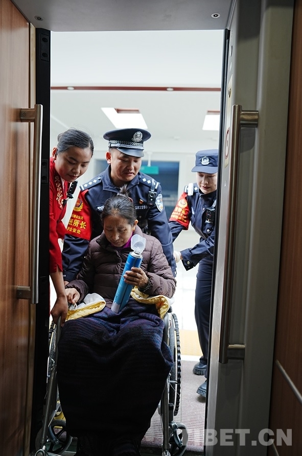 圖為民警護(hù)送高反乘客上車(chē)