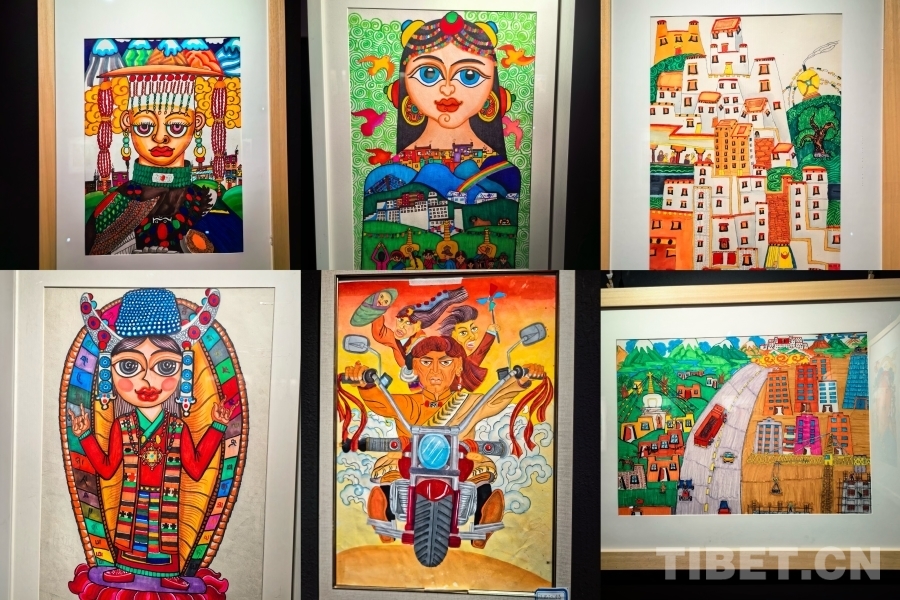 “孩子們平時都很喜歡畫畫,我們也會去給他們進行指導(dǎo),幫忙修改。有很多很優(yōu)秀的作品,今天我們在這里只展示了35幅代表作品供大家欣賞?!爆F(xiàn)任拉薩特殊教育學(xué)校美術(shù)老師的寧曉寒是該校的首屆畢業(yè)生,在從南京特教學(xué)院畢業(yè)后回到母校任教,他在展廳對著學(xué)生的作品用手語向我們介紹了作品背后的故事。“我們聾人雖然聽不到外界的聲音,但是我們可以用手語表達我們的心聲,用眼睛觀察這個世界,我希望我們可以勇敢地張口發(fā)音,大膽地嘗試,這樣社會對我們的了解也會發(fā)生變化。我們用眼睛去看這個世界,用眼睛感受西藏的發(fā)展變化。”