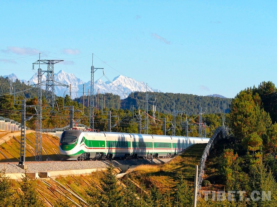 圖為復(fù)興號(hào)動(dòng)車組行駛在滇藏鐵路麗香段上 迪慶日?qǐng)?bào)社供圖