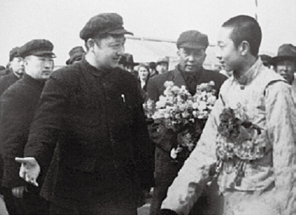 同年四月下旬,班禪從宏覺寺起程,赴京參加和平解放西藏的協(xié)議的簽訂。路過西安時,習仲勛親自到機場迎接班禪一行。這是班禪第一次會見習仲勛同志。他走下迎機艙時,習仲勛迎上來和班禪緊緊握手。這是他們神交已久的握手,彼此都留下了深刻的記憶。時隔多年后,班禪還給他的經(jīng)師和摯友嘉雅活佛說:“之前,我已和多少人握過手了。但習主任握著我的手時,我心中有一種全新的感悟,好像有一股溫暖的暖流在心中流過,這就是佛說的緣分福報。”習仲勛同志回憶他同班禪初次見面時的情形寫道:“一個活脫脫的英俊藏族少年活佛形象出現(xiàn)在我的眼前……有志不在年高,他的愛國熱情和坦誠豪爽給我留下深刻的印象。”這次見面是習仲勛和班禪四十載革命友誼的新起點。4月27日,班禪及堪廳僧俗官員一行45人抵達北京。周總理、朱德副主席等中央領導前往火車站迎接班禪?!拔逡弧眹H勞動節(jié),毛主席在天安門城樓上親切接見班禪和阿沛,并作了長時間的談話,意義重大。