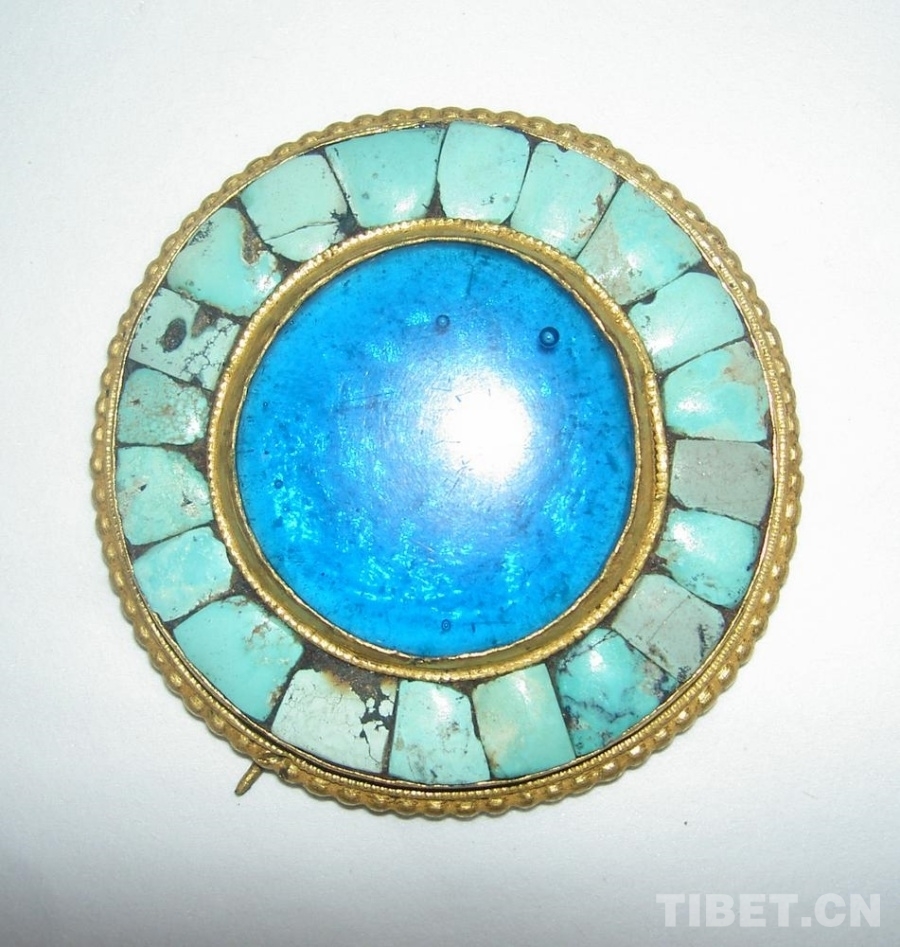 大英博物館藏19世界圓形銅鎏金鑲藍(lán)玻璃綠松石飾品(17號(hào))