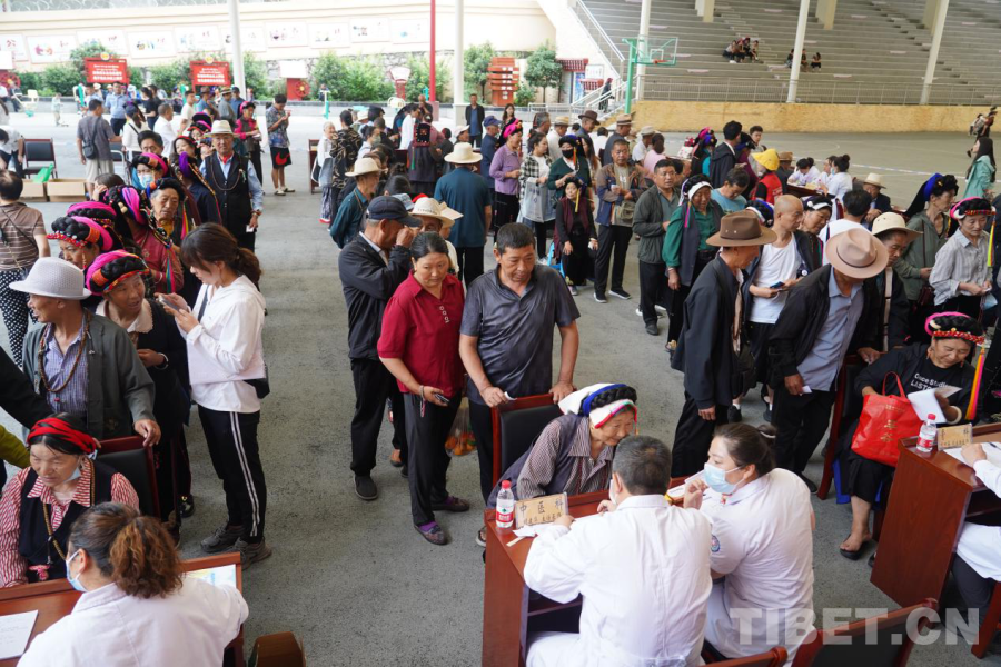 7月8日,義診專家分為3個(gè)小組,在縣城東女國廣場、丹東鎮(zhèn)和東谷鎮(zhèn)正式開展義診活動(dòng)。上午9時(shí),在縣城東女國廣場,得到消息的群眾早早來到現(xiàn)場排隊(duì)領(lǐng)號分流等待就診,現(xiàn)場共設(shè)立了10多個(gè)專業(yè)診療臺(tái),涵蓋了心內(nèi)科、骨科、神經(jīng)內(nèi)科等,確保能夠滿足當(dāng)?shù)鼐用竦尼t(yī)療需求。