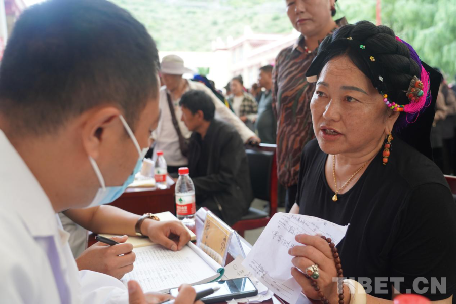 圖為義診現(xiàn)場患者向?qū)<易稍?丹巴縣融媒體供圖