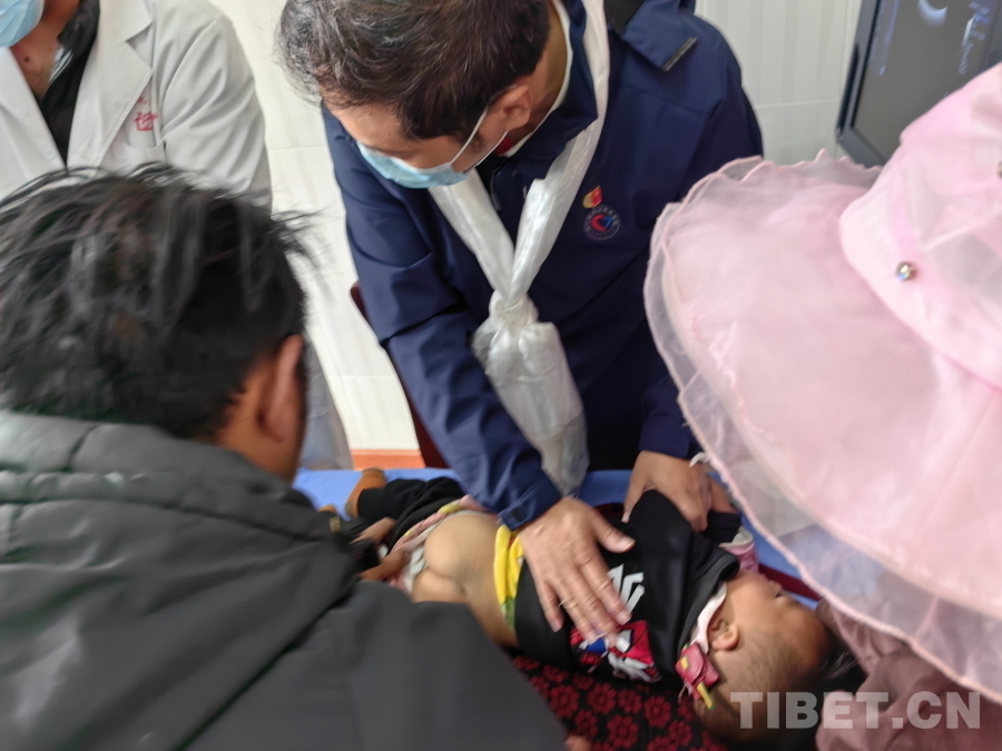 遲騁一邊安撫患兒,一邊進行觸診查體和B超檢查,發(fā)現(xiàn)孩子腹部異常硬。遲騁建議先給孩子嘗試通便。在遲騁的指導(dǎo)下,當(dāng)?shù)蒯t(yī)務(wù)人員為孩子使用了開塞露。幾分鐘之后,孩子就排便了。