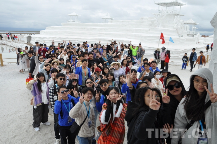 導(dǎo)游小段屢次溫柔提醒“請大家緊跟隊伍前行”,但她的聲音很快淹沒在“咔嚓咔嚓”的快門聲和“哇塞”的贊嘆聲中,響應(yīng)者寥寥。不過小段應(yīng)該早已習(xí)慣,畢竟這140位香港青少年學(xué)子來到的是被譽為“天空之境”的茶卡鹽湖景區(qū),他們每一步都踏著驚喜,手中的相機成了最忙碌的旅伴,爭相記錄下每一個不容錯過的瞬間。學(xué)生們在行走中交流,在按下快門的間隙分享著各自的震撼與感動。你方拍罷我登場,興奮之情溢于言表。