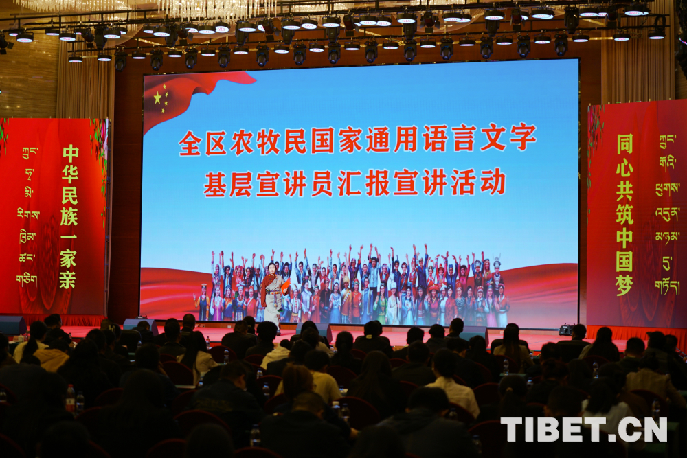 中國西藏網(wǎng)訊 “語言不僅僅是一種交流工具,它還承載著情感、態(tài)度和價(jià)值觀。即使在那曲,每個(gè)地區(qū)的方言都有很大的差別,正是因?yàn)閲彝ㄓ谜Z言文字的使用,讓大家方便了溝通,增進(jìn)了相互了解?!?月28日,西藏全區(qū)農(nóng)牧民國家通用語言文字基層宣講員匯報(bào)宣講活動(dòng)在拉薩市開展,來自那曲市巴青縣瑪如鄉(xiāng)曲古村的農(nóng)牧民宣講員達(dá)拉才措正在舞臺上向大家分享著她在基層宣講的經(jīng)歷。