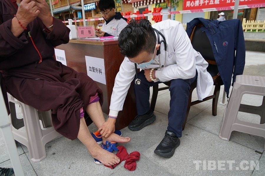7月6日傍晚,歷經(jīng)一整天的奔波后,胡暢所在的“同心·共鑄中國心”甘孜行白玉縣醫(yī)療專家團(tuán)抵達(dá)白玉縣城。在接下來七天的幫扶活動中,胡暢先后在白玉縣新時代文明實(shí)踐廣場、縣人民醫(yī)院、昌臺片區(qū)阿察鎮(zhèn)、河坡鄉(xiāng)中心小學(xué)等地義診,并在縣人民醫(yī)院為到場的當(dāng)?shù)蒯t(yī)護(hù)人員和消防隊員開展了一場以血管外科為主題的健康科普講座。活動期間,一聲聲道謝,一條條哈達(dá),一張張笑臉,道不盡的是患者們的感激,凝結(jié)的是胡暢與甘孜白玉再也割舍不斷的情感聯(lián)結(jié)?!霸诮诸^和群眾相遇,他們知道我們是北京過來的義診醫(yī)生,很歡迎我們,會微笑著和我們打招呼,讓人覺得很溫暖?!?nbsp;