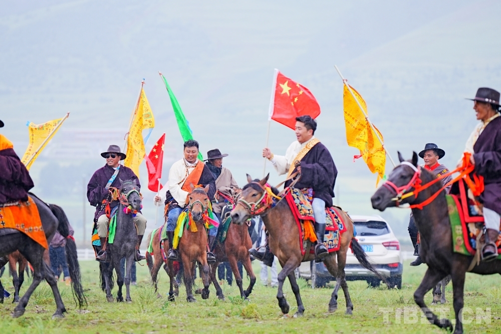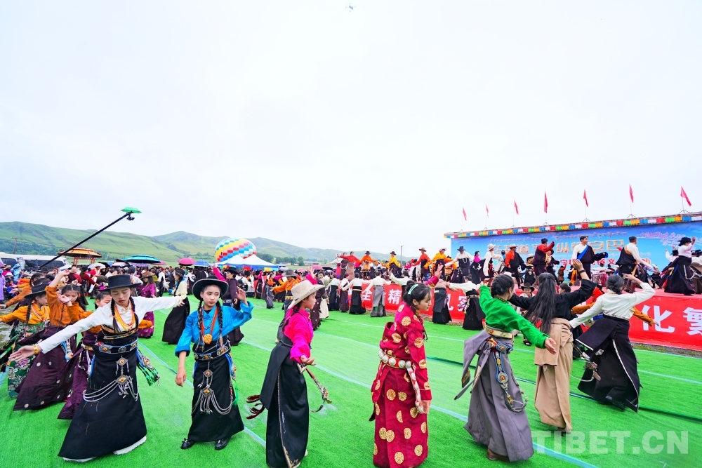一場傳統(tǒng)的祈福儀式拉開活動的序幕。身著盛裝的騎手擎著彩旗,策馬轉(zhuǎn)繞祈福的煨桑臺,共同祝愿祖國繁榮昌盛,祝福家鄉(xiāng)安定祥和,各族人民團(tuán)結(jié)進(jìn)步。少兒服飾隊(duì)和300名當(dāng)?shù)厝罕娛峙豕_(dá)悉數(shù)亮相在舞臺前,向四方來客表示誠摯歡迎?!百愸R”“吉祥大鍋莊”等民族歌舞精彩上演,游客也加入其中跳起團(tuán)結(jié)鍋莊,盡享盛夏安巴之樂。