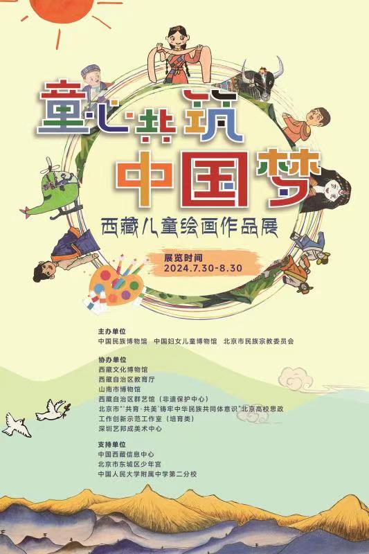 據(jù)悉,為全面推進中華民族共有精神家園建設,深入實施青少年“筑基工程”,開展有形、有感、有效的民族團結(jié)進步教育,中國民族博物館與中國婦女兒童博物館積極發(fā)揮博物館公共文化教育的職能作用,連續(xù)兩年組織邊疆和內(nèi)地少年兒童以繪畫藝術(shù)為載體雙向交流,搭建平臺,舉辦“童心共筑中國夢——兒童繪畫作品展”。繼2023年新疆兒童繪畫作品展取得圓滿成功后,今年以“西藏兒童繪畫作品”為專題的活動入選國家民委“各族青少年交流計劃2024年全國試點示范項目”,并再次啟動,旨在推動各地兒童以筆寄情、以畫交友,共同打造一個各民族共事共樂的平臺,推動文旅融合與美育融合,促進各民族交往交流交融,共同譜寫中華民族共有精神家園的新篇章。