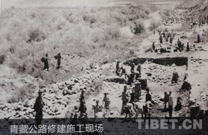 圖為青藏公路修建施工現(xiàn)場(chǎng) 翻拍自青海省博物館 翻拍:王茜