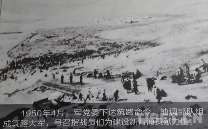 圖為1950年4月軍黨委抽調(diào)部隊(duì)組成筑路大軍 翻拍自青海省博物館 翻拍:王茜