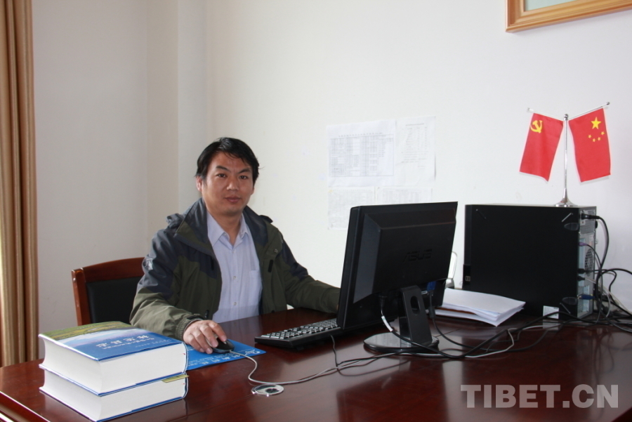 圖為李彥明在西藏農(nóng)牧學院辦公室