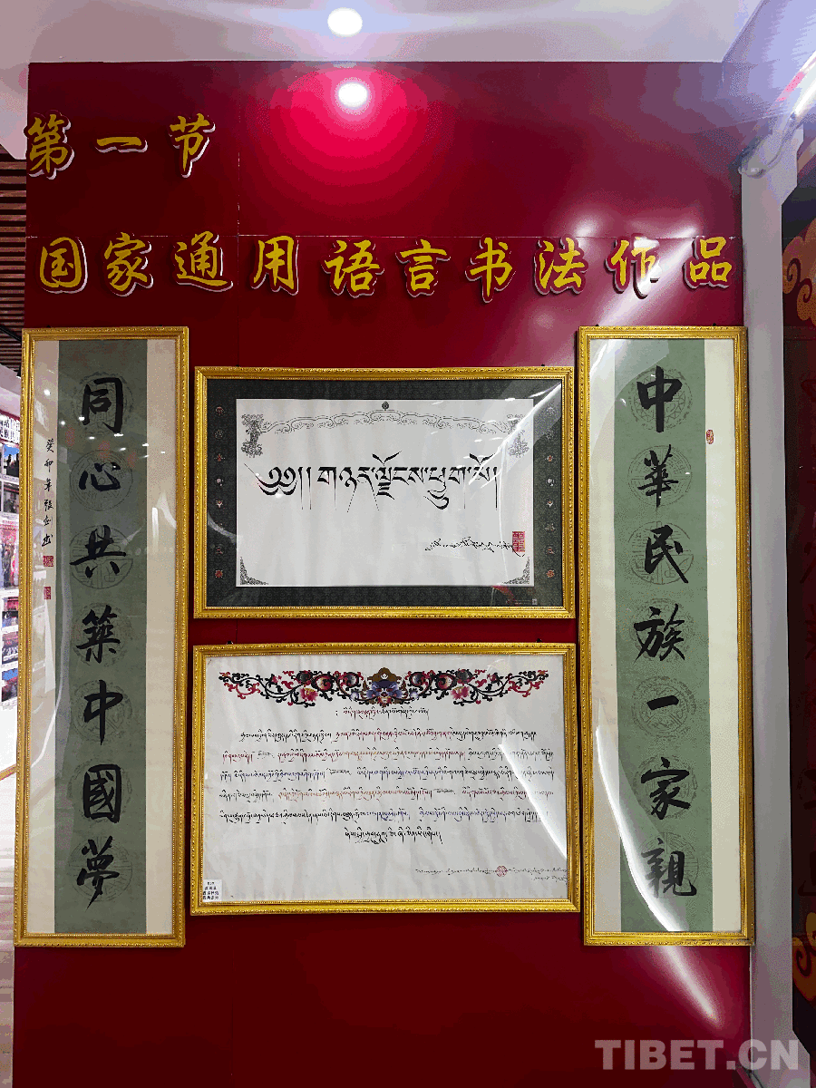 圖為展館內(nèi)聶榮縣干部群眾的書法作品 攝影:旦曲
