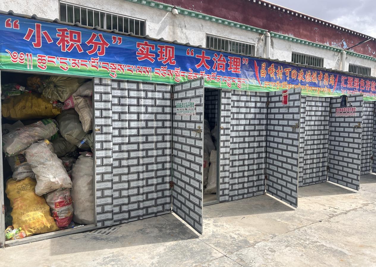 積分制促進了社區(qū)聯(lián)結和經(jīng)濟消費,還推動了鄉(xiāng)村生態(tài)的良性治理。瓊結縣加麻鄉(xiāng)昌嘎村駐村工作隊的格桑多吉展示了“五門聯(lián)排”的可回收垃圾中轉(zhuǎn)站,“這些垃圾由村委會收集起來后統(tǒng)一送去回收,回收的資金會放在‘文化銀行’中用于購買新的積分物品?!倍劣凇袄钡膩碓?,則依賴“綠色銀行”對村民的激勵?!鞍▔牡碾婏堨?、高壓鍋,都可以送到村委會進行統(tǒng)一回收?!备裆6嗉榻B說,村民將分類整理好的垃圾送至“綠色銀行”,通過“兩委”班子和村務監(jiān)督委員會委員核定之后,可以根據(jù)《綠色銀行兌換項目表》直接兌換商品用于日常生產(chǎn)生活。自“綠色銀行”推行以來,昌嘎村累計兌換商品總價值6千元,讓行動變積分、積分變商品,充分調(diào)動了群眾參與鄉(xiāng)村生態(tài)建設的積極性。