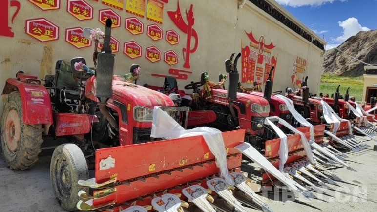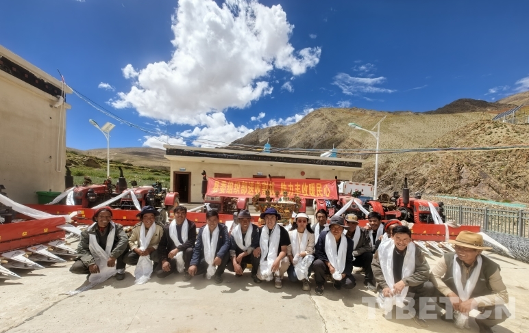 發(fā)放儀式當天,拉隆村13戶村民代表來到現(xiàn)場,喜笑顏開,激動的心情難以言表?!罢鏇]想到駐村工作隊能夠這么貼心地幫助我們,不僅捐贈了農(nóng)機,還頂著大太陽下田幫我們收青稞,真是太感動,太感謝了!”村民石塔望著自己剛收過的青稞地,對駐村工作隊和村委會的同志們一再表示感恩和謝意。