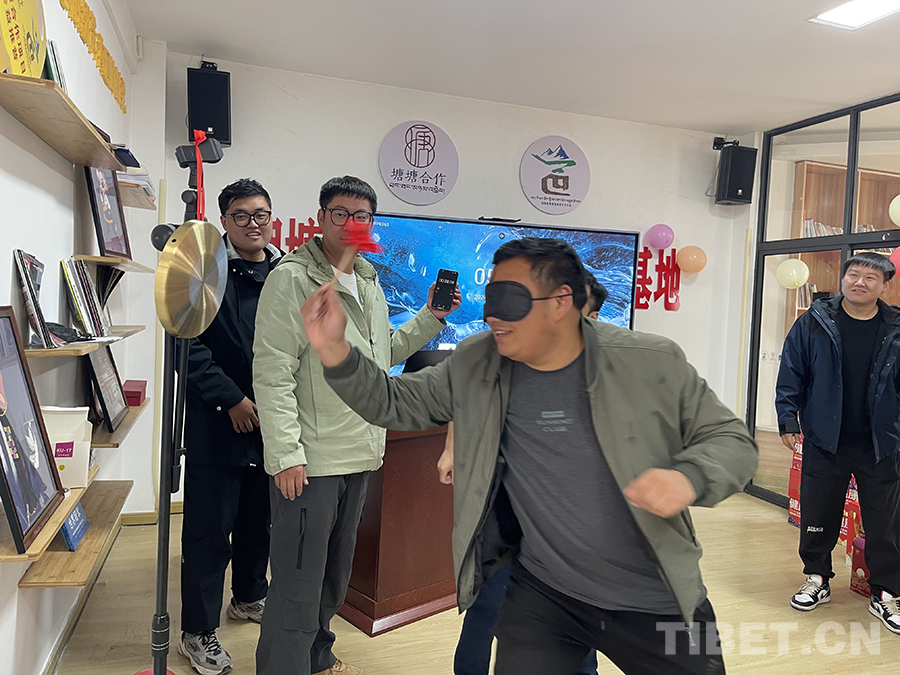 圖為蒙眼敲鑼游戲
