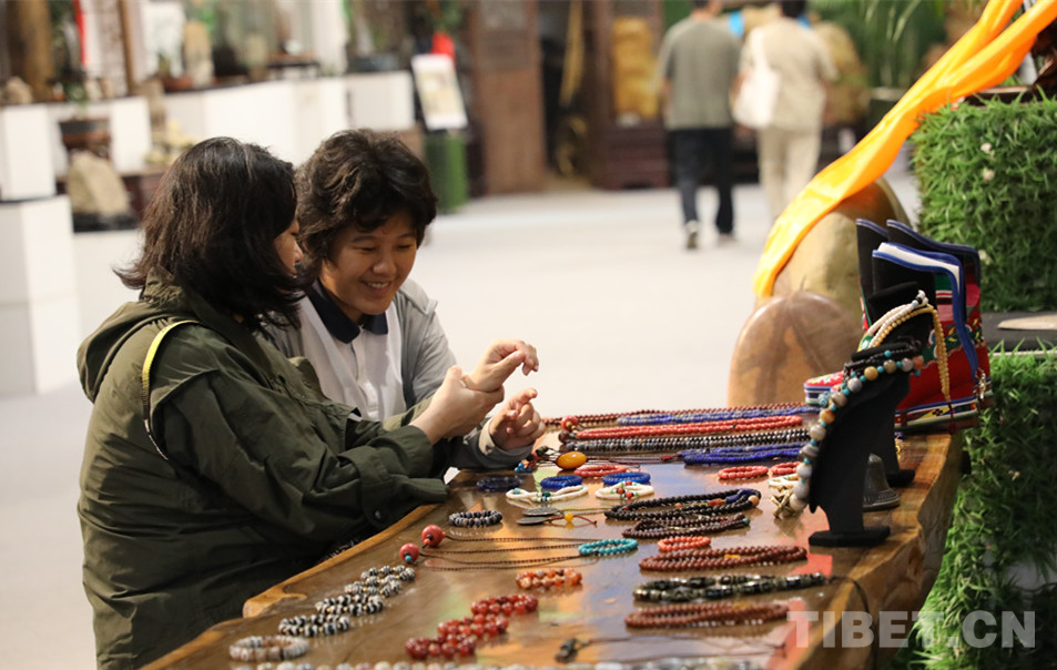 藏式古珠飾品,色彩濃郁、造型獨(dú)特,透著與眾不同的區(qū)域文化風(fēng)格和時(shí)代美,吸引很多游客駐足觀賞和驚嘆。