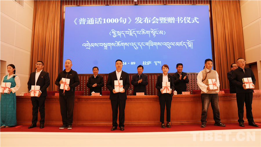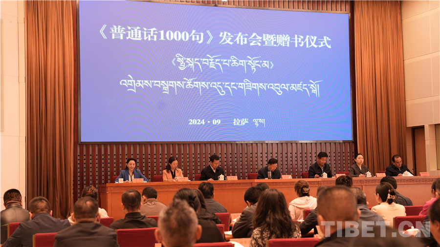 中國西藏網(wǎng)訊 為進(jìn)一步助力國家通用語言文字推廣普及,鑄牢中華民族共同體意識(shí)。9月20日,西藏自治區(qū)藏語委辦(編譯局)在拉薩舉行了《普通話1000句》漢藏對(duì)照版新書發(fā)布會(huì)暨贈(zèng)書儀式。西藏自治區(qū)政府副主席、自治區(qū)藏語委副主任甲熱·洛桑丹增出席會(huì)議,西藏自治區(qū)藏語委辦(編譯局)黨組副書記、主任(局長)達(dá)娃次仁作新書出版介紹,會(huì)上宣讀了教育部語文出版社發(fā)來的賀信,并向與會(huì)代表贈(zèng)書。