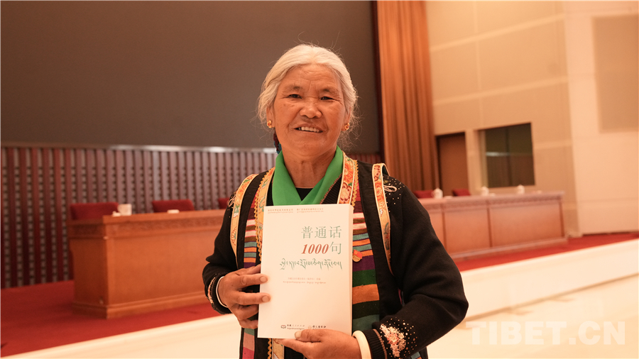 新書發(fā)布會(huì)結(jié)束后,來自山南市乃東區(qū)昌珠鎮(zhèn)的群眾代表尼瑪曲珍對(duì)著藏文的譯音標(biāo)注念了幾句常用普通話,她說:“發(fā)布會(huì)上,我一直在翻看這本書,基本都是我們能夠在日常生活和工作中經(jīng)常用到的短句,藏文的譯音標(biāo)注更為我們普通話初學(xué)者提供了很大的便利,回頭我要好好學(xué)習(xí)這本書的內(nèi)容,也將把這書推薦給身邊想要學(xué)好普通話的農(nóng)牧民群眾?!?/p>