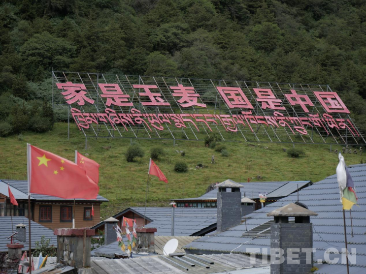 圖為玉麥鄉(xiāng)“家是玉麥,國是中國”標(biāo)語 攝影:文翔宇